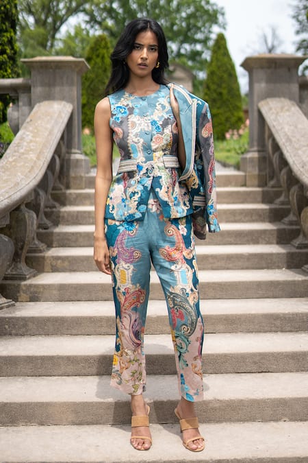 Blue Linen, Viscose Oranta Rara Printed Pant