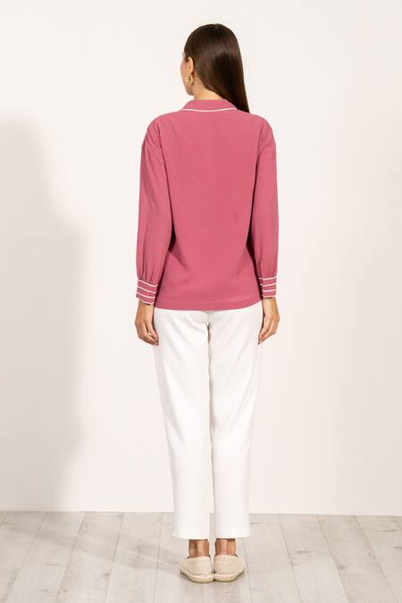 Buy_RANNA GILL_Pink Georgette Embroidery Collared Viara Top_at_Aza_Fashions