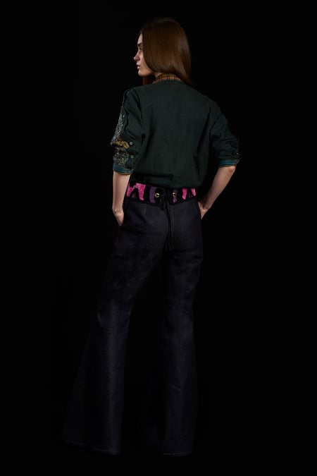 Multi color cotton shirt featuring a checks print with dabka and aari embroidered leopard motifs