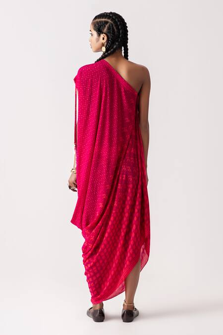 Buy_Aseem Kapoor_Red Rasa One Shoulder Draped Dress_Online_at_Aza_Fashions