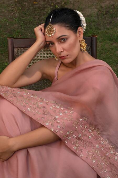 Pink Organza Satin Silk Gulaab Embroidered Saree