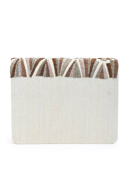 Shop_The Purple Sack_White Embroidery Raw Silk Clutch With Sling _Online_at_Aza_Fashions