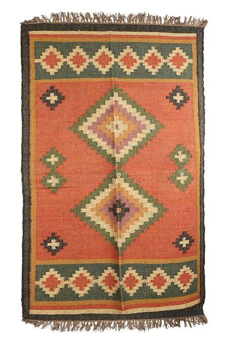 Product Finish: Kilim, Hand woven geometric pattern, Dimensions (in ft): 3 x 5, Weight (in kgs): 1.7, Thickness (in mm): 5, Note: Only the rug shown in the image is being sold