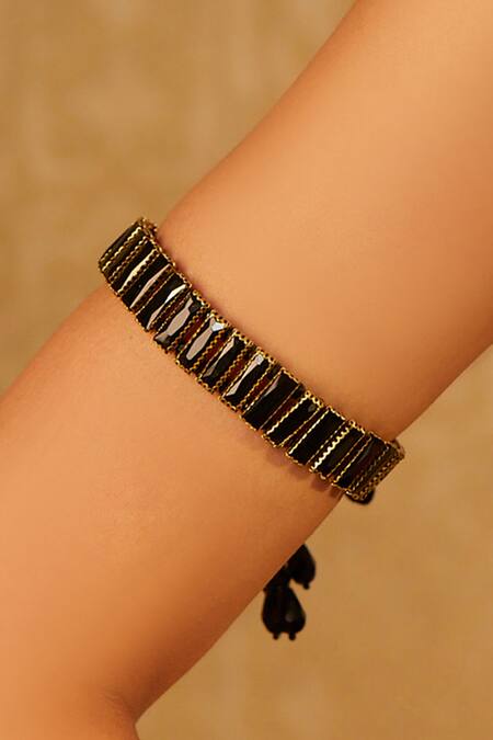 Buy_Tarun Tahiliani_Black Crystals Rectangular Stone Bajubandh_at_Aza_Fashions