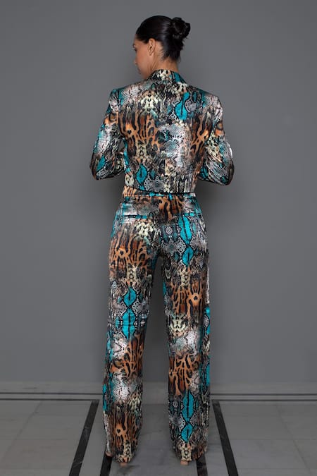 Brown slytherin print cropped blazer in mashru silk fabric.