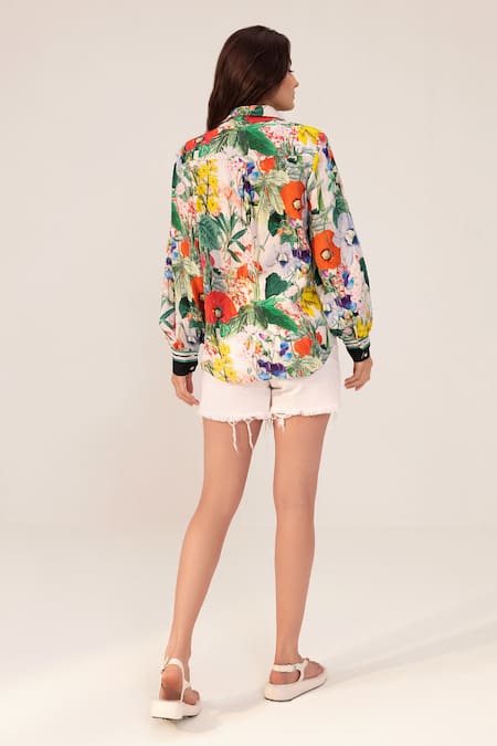 Multi Color Cotton Beads Collared Eden Floral Print Shirt