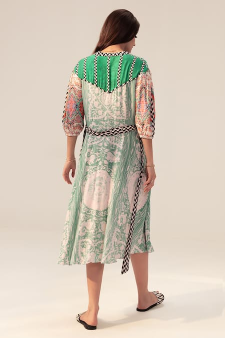 Green Bamboo, Georgette V-neck Elan Blossom Print Dress