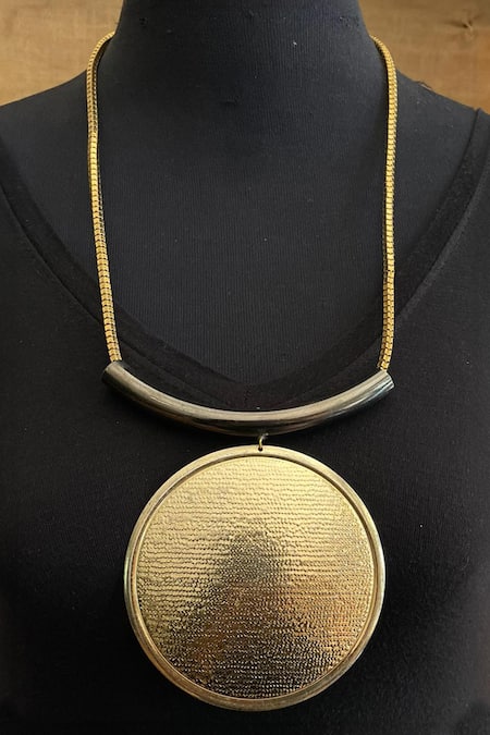 Buy_Rejuvenate Jewels_Gold Plated Headlight Carved Pendant Necklace _Online_at_Aza_Fashions