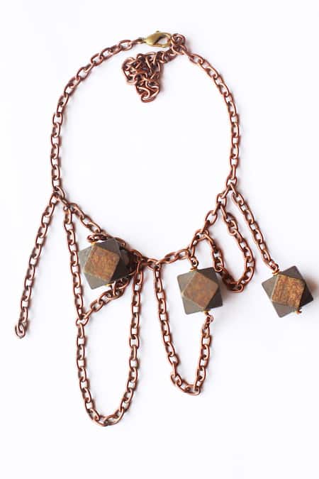 Buy_Rejuvenate Jewels_Brown Hexagon Drops Necklace _at_Aza_Fashions