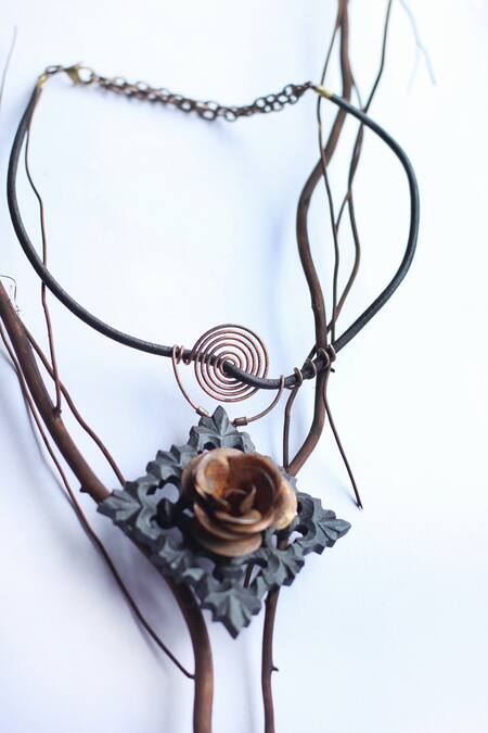 Buy_Rejuvenate Jewels_Black Rustic Rose Love Pendant Necklace _Online_at_Aza_Fashions