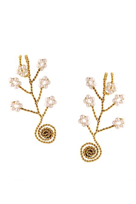 Gold plated floral carved ear cuffs featuring pearl embellishments