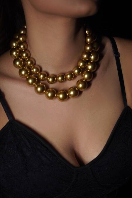 Buy_Rejuvenate Jewels_Gold Plated Two-layered Pearls Statement Necklace_at_Aza_Fashions