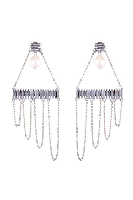 Silver Plated Chains, Pearls Zigzag Tassel Earrings
