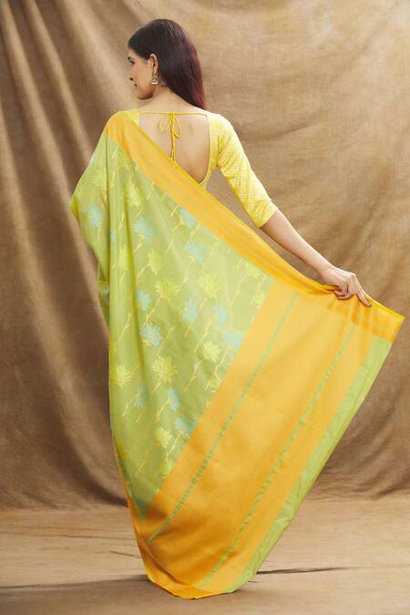 Green Mushroo Silk Woven Floral Saree