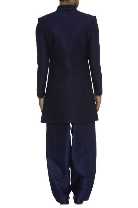Blue Resham Embroidered Sherwani With Pyjama