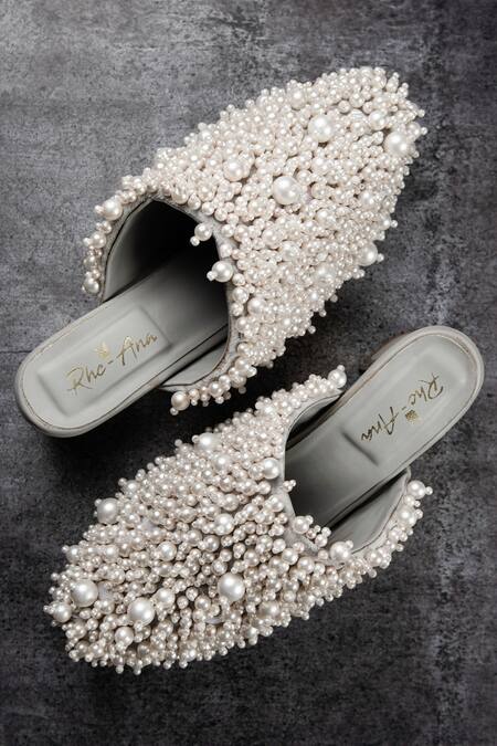 Pearl embellishments covering the entire upper, Pointed toe design for a sleek look, Non-slip sole for added comfort