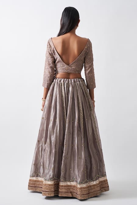 Buy_Rhua_Silver Pure Cotton Silk Floral Motifs, Zardozi Banarasi Embroidered Lehenga Set _Online_at_Aza_Fashions