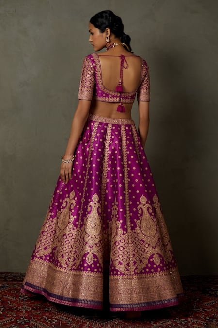 Fringe bordered dupatta, Back tassel tie-up, Sequin embellishments on lehenga