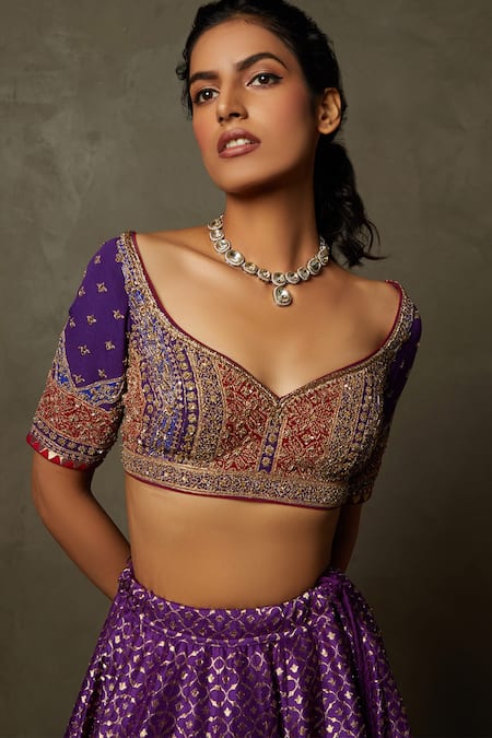 Purple Blouse Chinon, Dupatta Organza, Lehenga Banaras Bridal Set