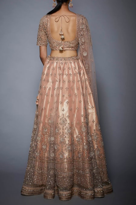 Dupatta with scallop border, Blouse with deep back, Note:, Please get in touch with our customer service to customise your bridal trousseau.