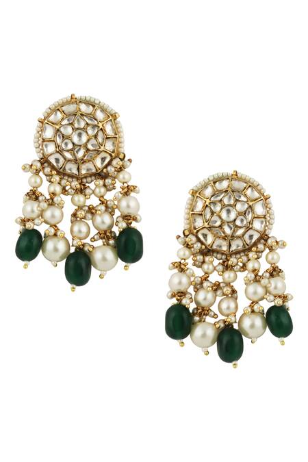 Gold Plated Crystals, Pearls, Stones Bead Drop Dangler Earrings