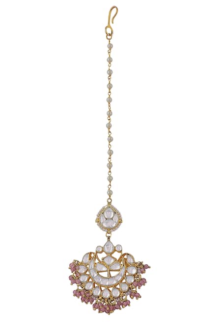 22kt gold plated maangtikka featuring real jadtar stone embellishments and a floral motif pattern