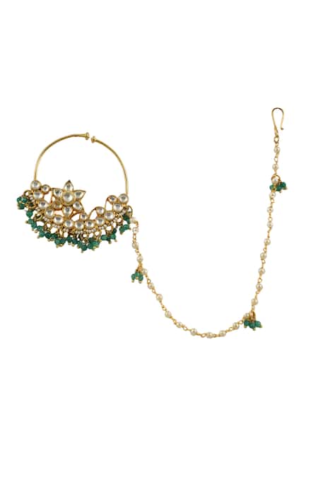 Gold Plated Diamonds, Beads, Stones Embellished Nath