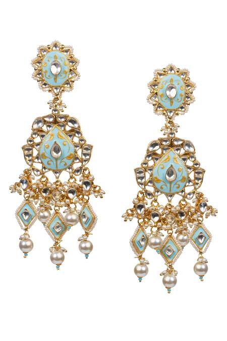 Firozi blue enamelling, Cluster bead drops, Geometric motif drops