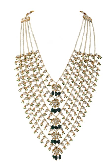 5-layered design with cascading pearls, Floral motif pendant with intricate detailing, Closure with pull-out drawchord for easy wear
