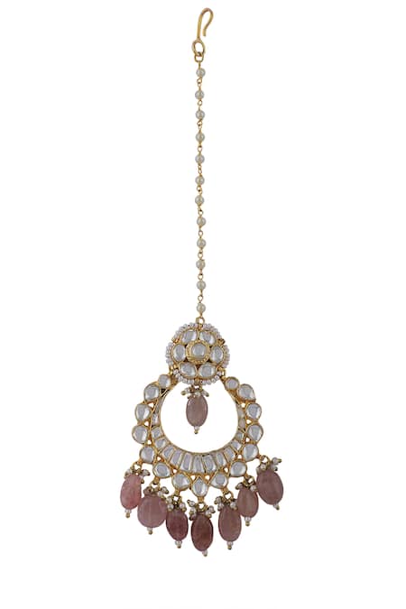 Jadtar stone embellished maangtikka featuring bead drops and semi precious pearl accents