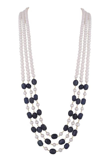 Blue Sapphire Gemstone And Pearl Embellished Long Mala Necklace