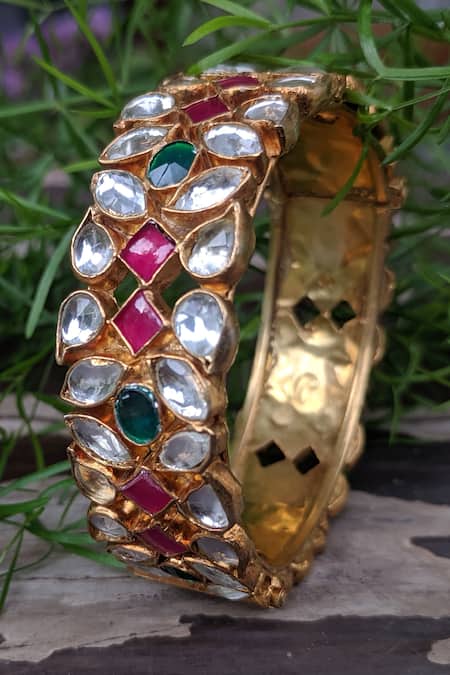 Buy_Riana Jewellery_Gold Plated Cut Work, Stones Bangle _at_Aza_Fashions