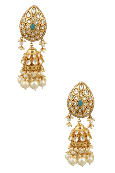 Blue Pearls, Diamonds, Stones Embellished Jhumkas