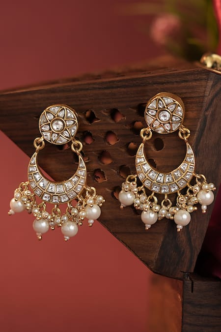 Embellished with white jadtar stones, Pearl drop accents, 22kt matt gold plating