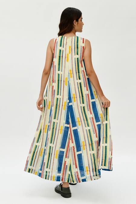 Buy_Rias Jaipur_Multi Color Cotton V-neck Stripe Print Dress_at_Aza_Fashions