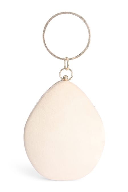 Crystal studded handle, 3D embroidered flowers, Gold thread work accents