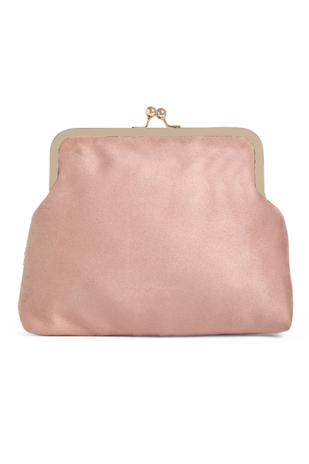 Pink pouch style clutch featuring floral sequin embroidery