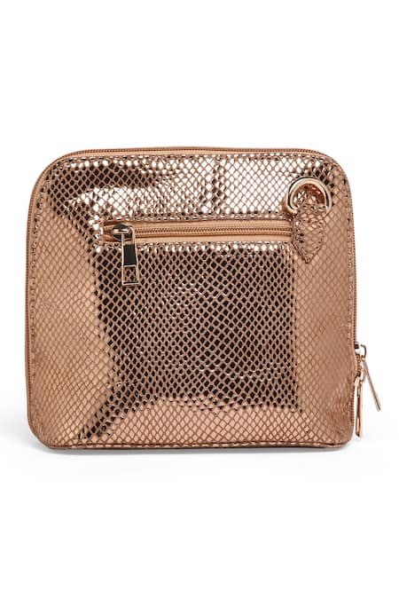 Gold Stones Metallic Floral Motif Clutch