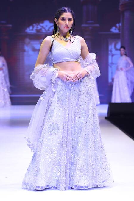 Buy_Rina Dhaka_Silver Net Sequins, Embroidery Scattered Bridal Lehenga Set_Online_at_Aza_Fashions