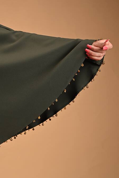 Green Cotton, Crepe Beads One Shoulder Chakram Embroidered Top And Pant Set