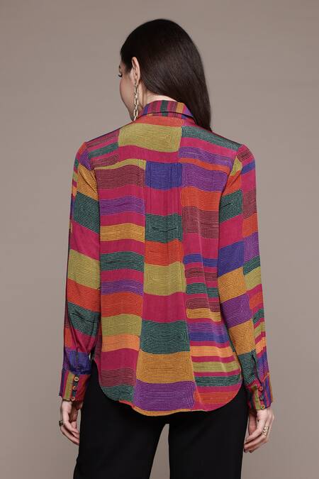 Buy_Ritu Kumar_Pink Viscose Collared Bauhaus Print Loose Shirt_Online_at_Aza_Fashions