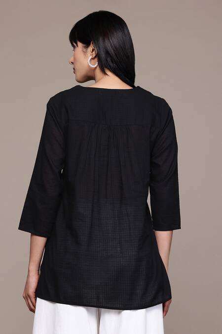 Black Cotton Embroidery Round Neck Multi Dori Kurti