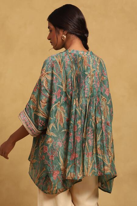 Green tunic featuring botanic prints and front pintucks. Comes with a matching camisole.