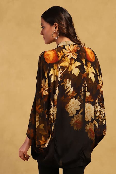Black Viscose Embroidery Bandeau Neck Genevieve Print Top