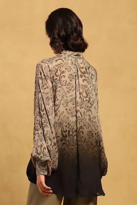 Grey ombre shirt featuring a floral abstract pattern and collared neck