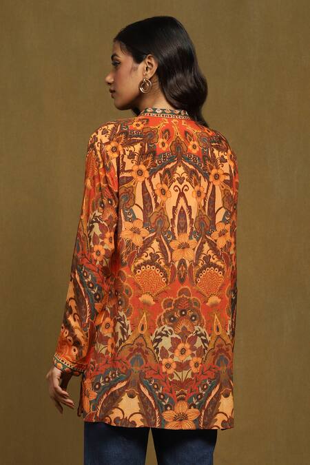 Orange Rayon, Crepe Embroidery Bandeau Neck Mandala Print Kurta
