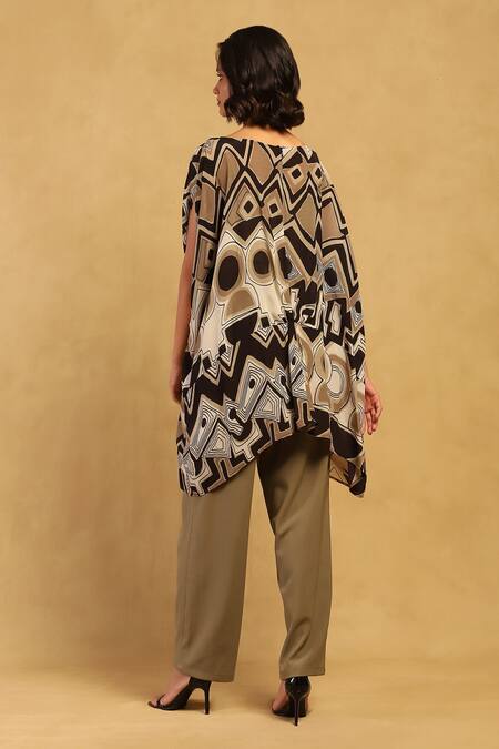 Scoop neckline with split sleeves, Asymmetric hemline, All over abstract meraki prints
