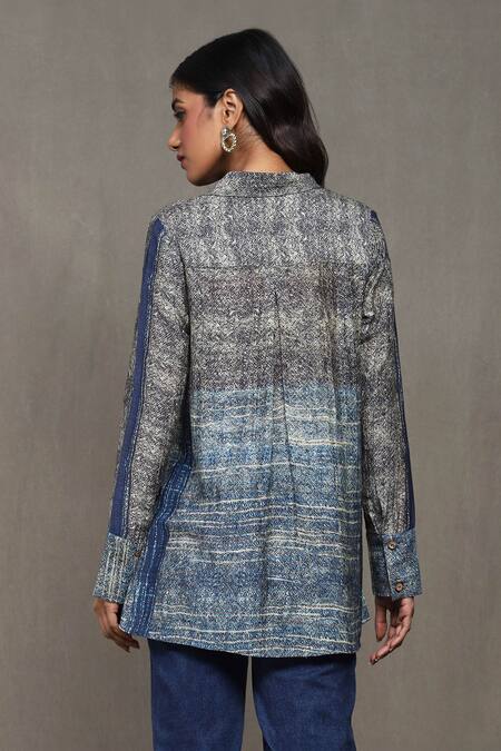 Blue shirt featuring geometric prints with a collar and full sleeves