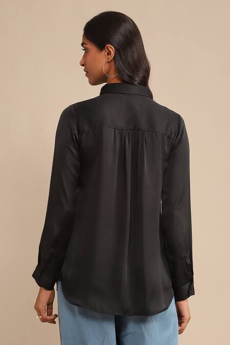 Black Polyester Collared Plain Shirt