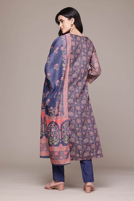 Buy_Ritu Kumar, Ri.Ritu Kumar, aarke Ritu Kumar_Blue Polyester, Viscose Embroidery Floral Printed Kurta Set With Pant And Dupatta
